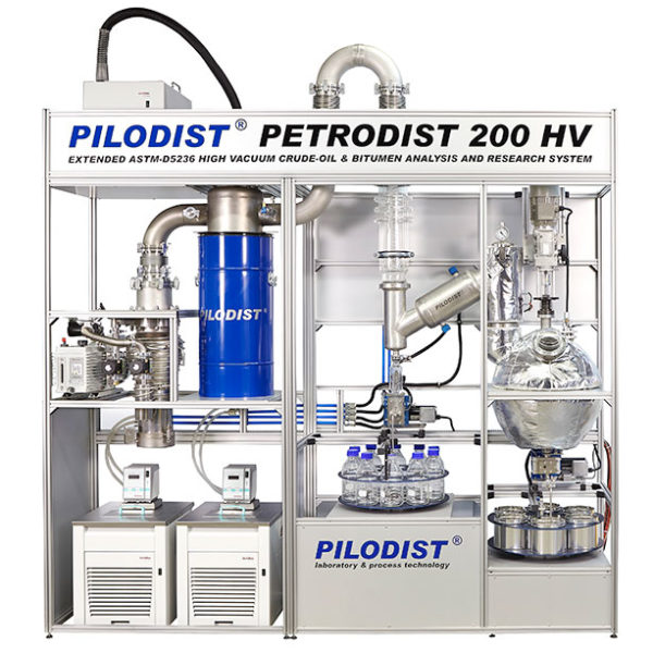 - Dầu Dầu thô được nạp vào bình thép không gỉ 33L để nạp 10-22L dầu thô và được đun nóng bằng bếp gia nhiện nâng hạ tự động. Bếp gia nhiệt có 3 vùng gia nhiệt ngang có thể được kích hoạt hoặc khử kích hoạt theo mức độ làm đầy của bình. Tất cả các hơi bốc lên đều đi qua cột thép không gỉ DN 100 và được ngưng tụ trong một bình ngưng thẳng đứng tích hợp. Một thiết bị ngưng tụ hiệu suất cao bổ sung làm bằng thủy tinh borosilicate được đặt trên đỉnh của công trình cột là cần thiết để ngưng tụ tất cả các thành phần sôi nhẹ còn lại.