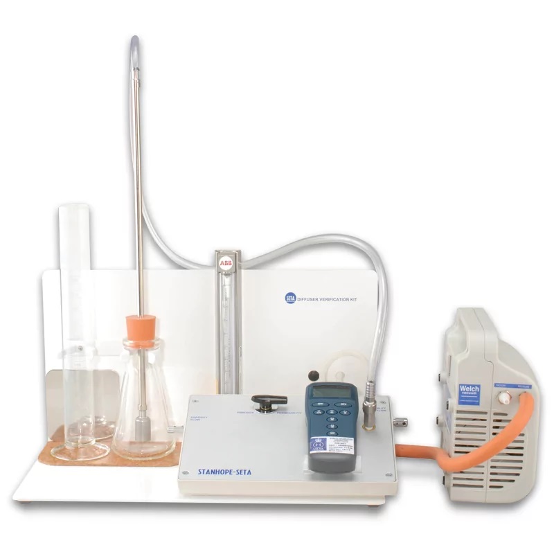 Bao gồm một bơm khí, một van chọn thử nghiệm, hai bộ điều chỉnh kiểm soát khí, đồ thủy tinh, áp kế kỹ thuật số và một lưu lượng kế, tất cả được lắp trên một khung máy với các ống phân phối và ống nối cần thiết.