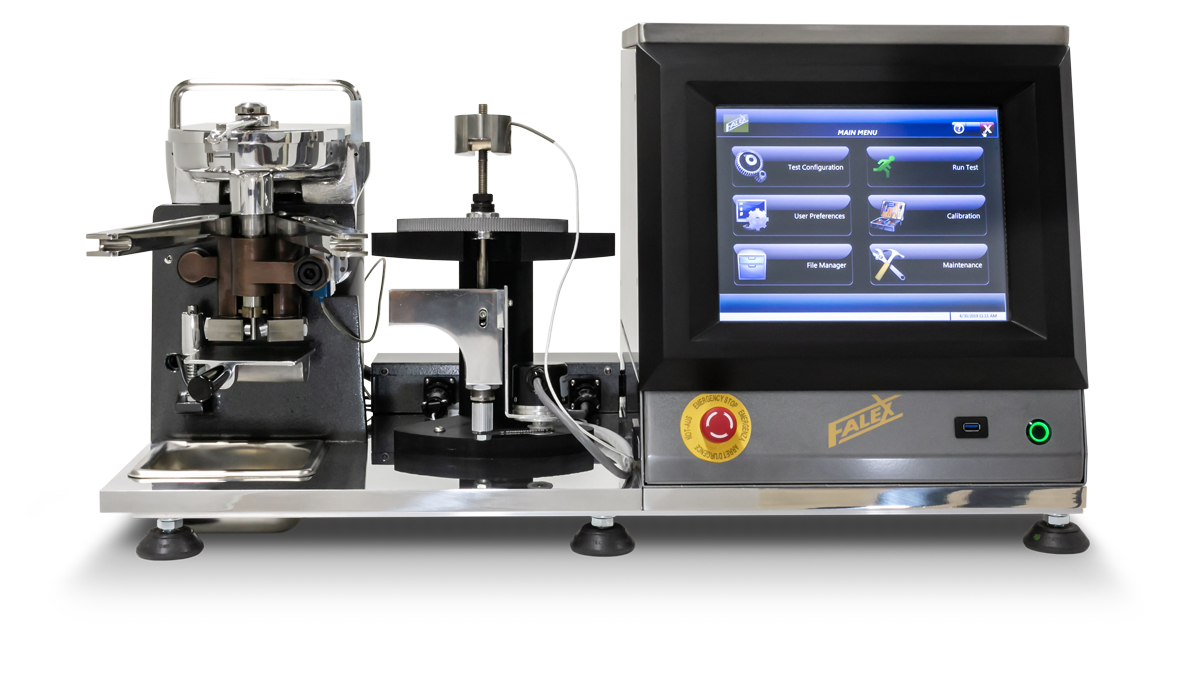 Thiết bị kiểm tra chốt và khối chữ V Falex đa năng được sử dụng để đánh giá các đặc tính mài mòn, ma sát và áp suất cực đại của chất bôi trơn, lớp phủ và vật liệu trong nhiều ứng dụng. Mẫu máy mới nhất được trang bị hệ thống máy tính màn hình cảm ứng tích hợp giúp dễ dàng vận hành, hiệu chuẩn, thu thập dữ liệu và báo cáo thử nghiệm. Các mẫu thử tùy chỉnh có sẵn từ các vật liệu khác để phù hợp hơn với điều kiện thực tế.